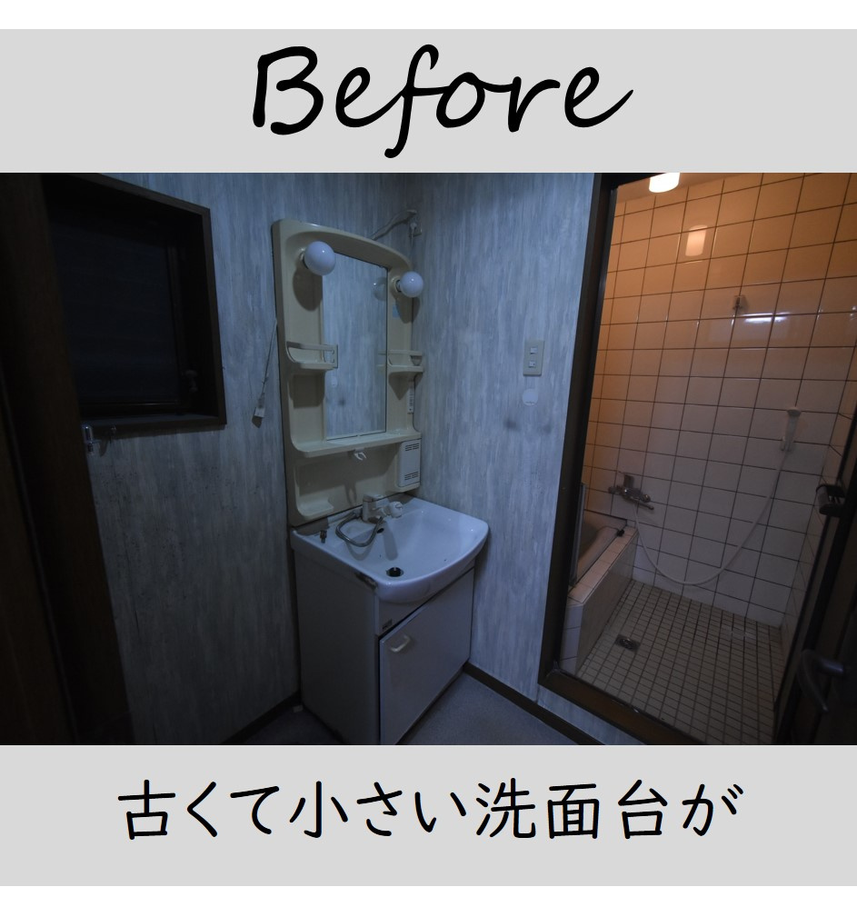昔ながらの洗面台は、小さくて収納も少ない……