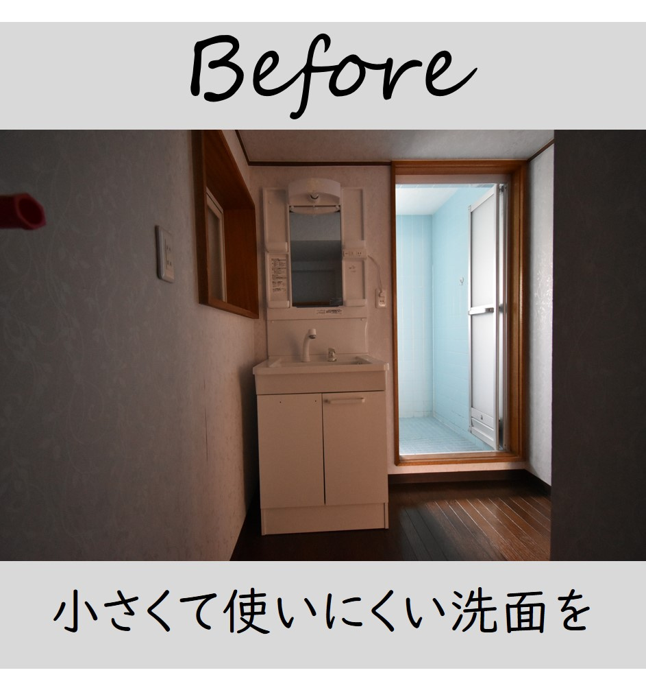 小さかった洗面台が、幅の広いものになりました。